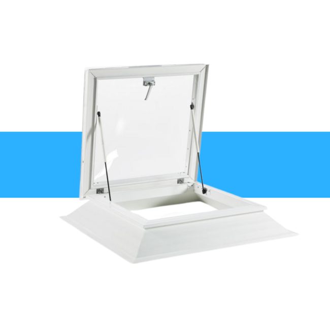 • Handmatig te openen ventilerende lichtkoepel met opstand - dubbelwandig polycarbonaat slagvast