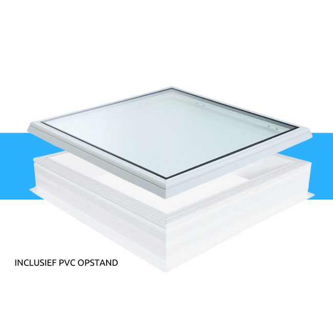 De rechte PVC opstand 20/00 EP = 0,64 W/m²K is inbegrepen. Hierdoor is de daglichtmaat gelijk aan de dakopening ofwel daksparing.